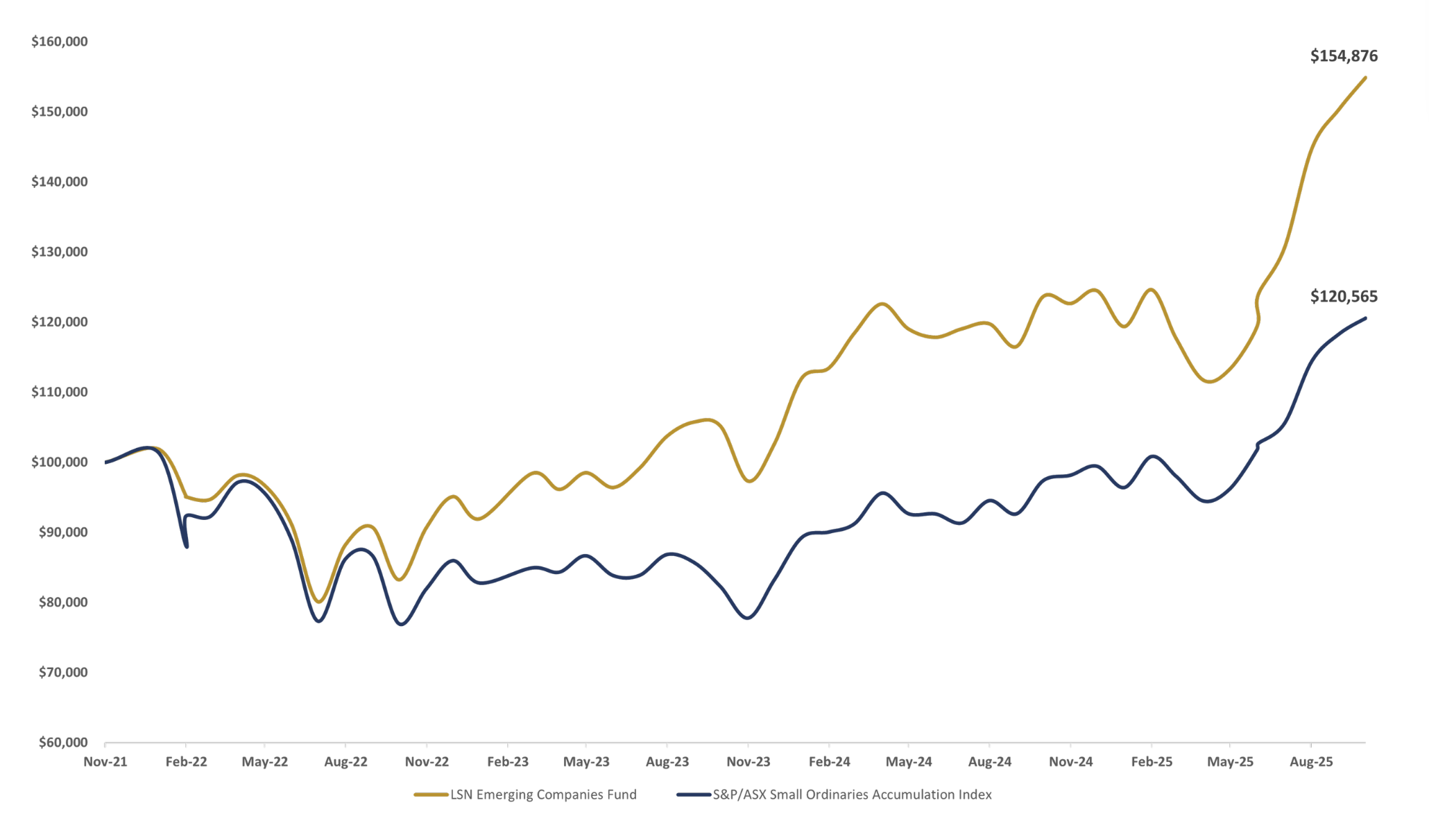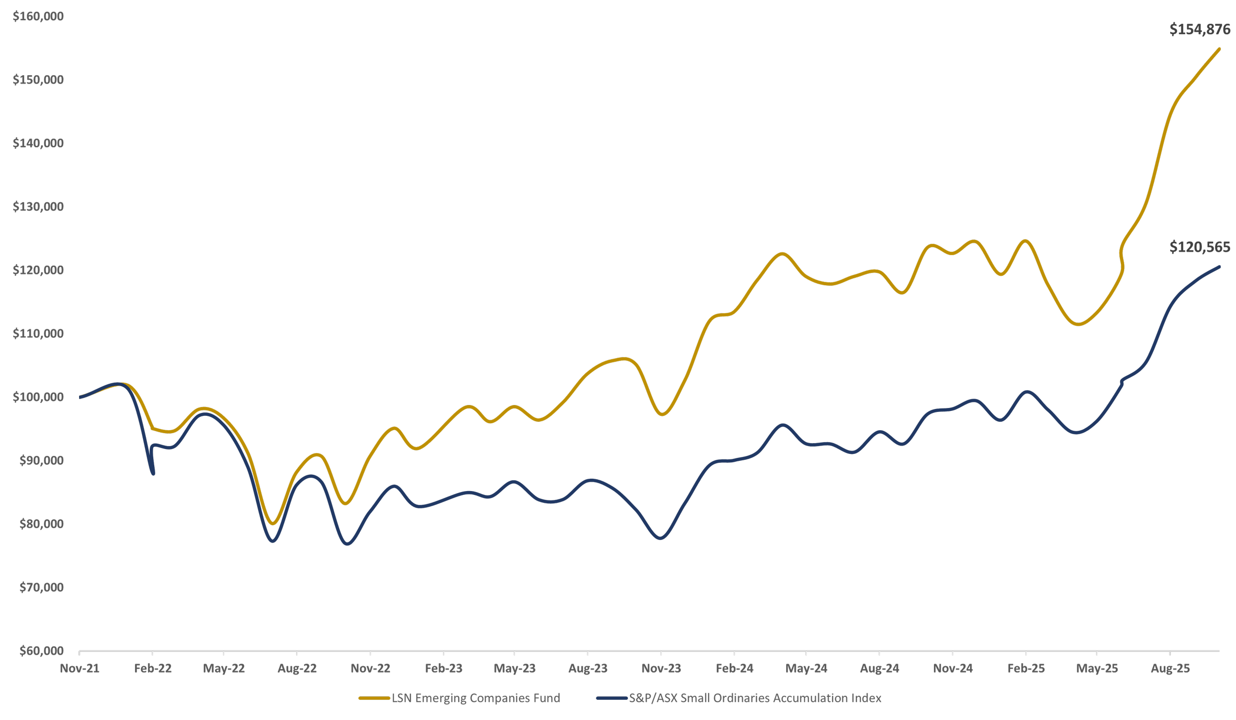 | LSN Emerging Companies Fund | +3.0% | +18.5% | +26.2% | +19.5% | +54.8% | +11.9% |