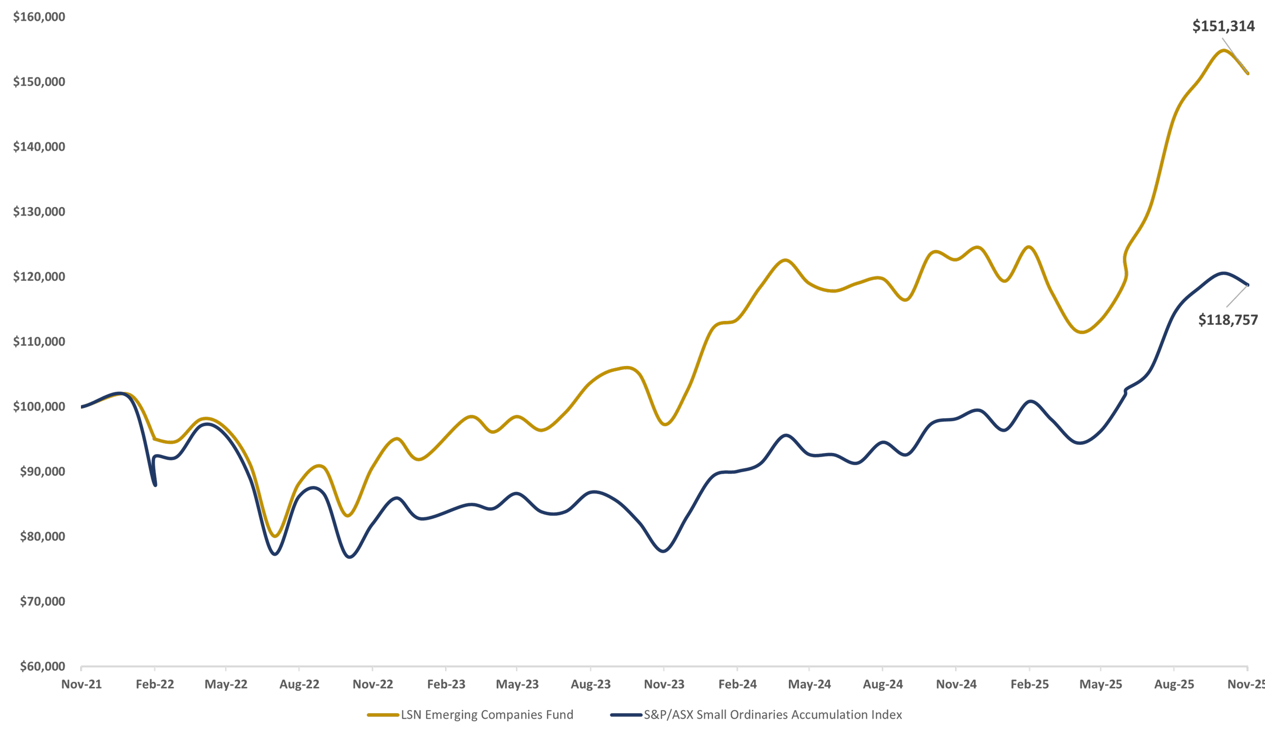 | LSN Emerging Companies Fund | -2.3% | +4.5% | +21.6% | +16.7% | +51.2% | +11.0% |